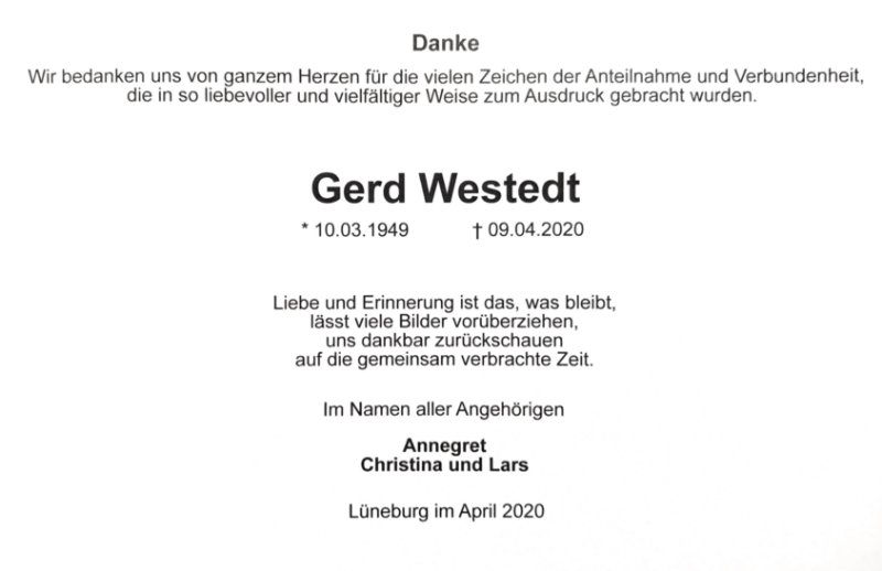 Gerd Westedtgestorben am 9. April 2020