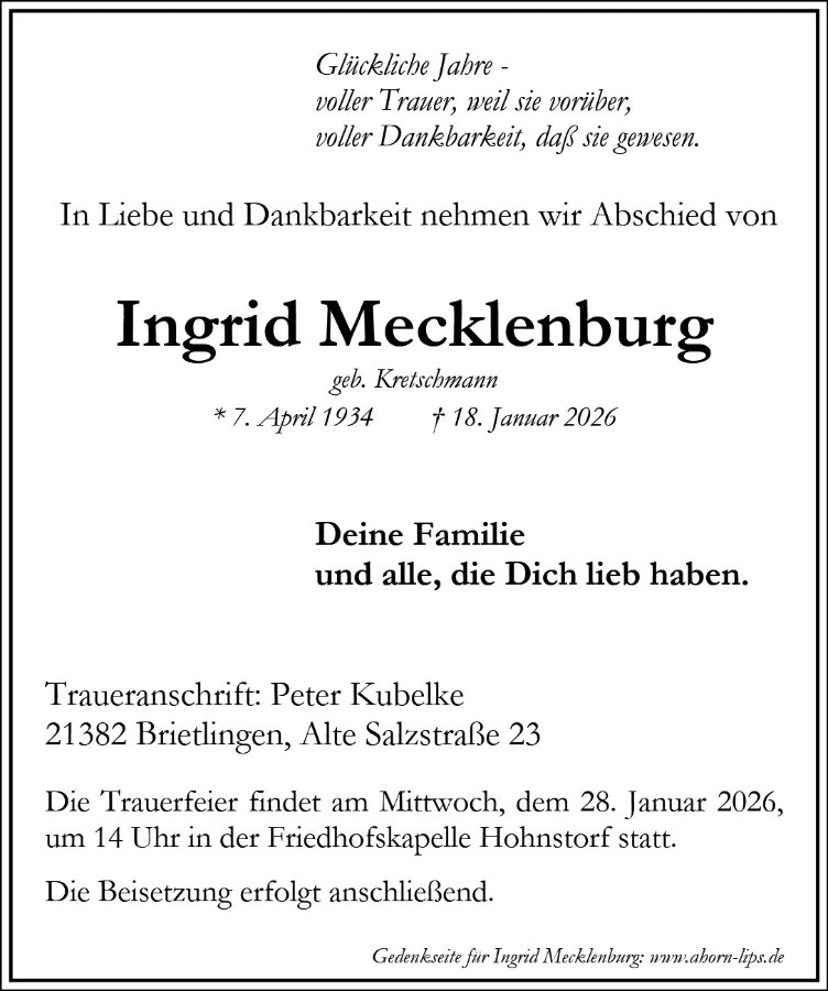 geboren am 7. April 1934 in Reinbek gestorben am 18. Januar 2026 in Brietlingen
